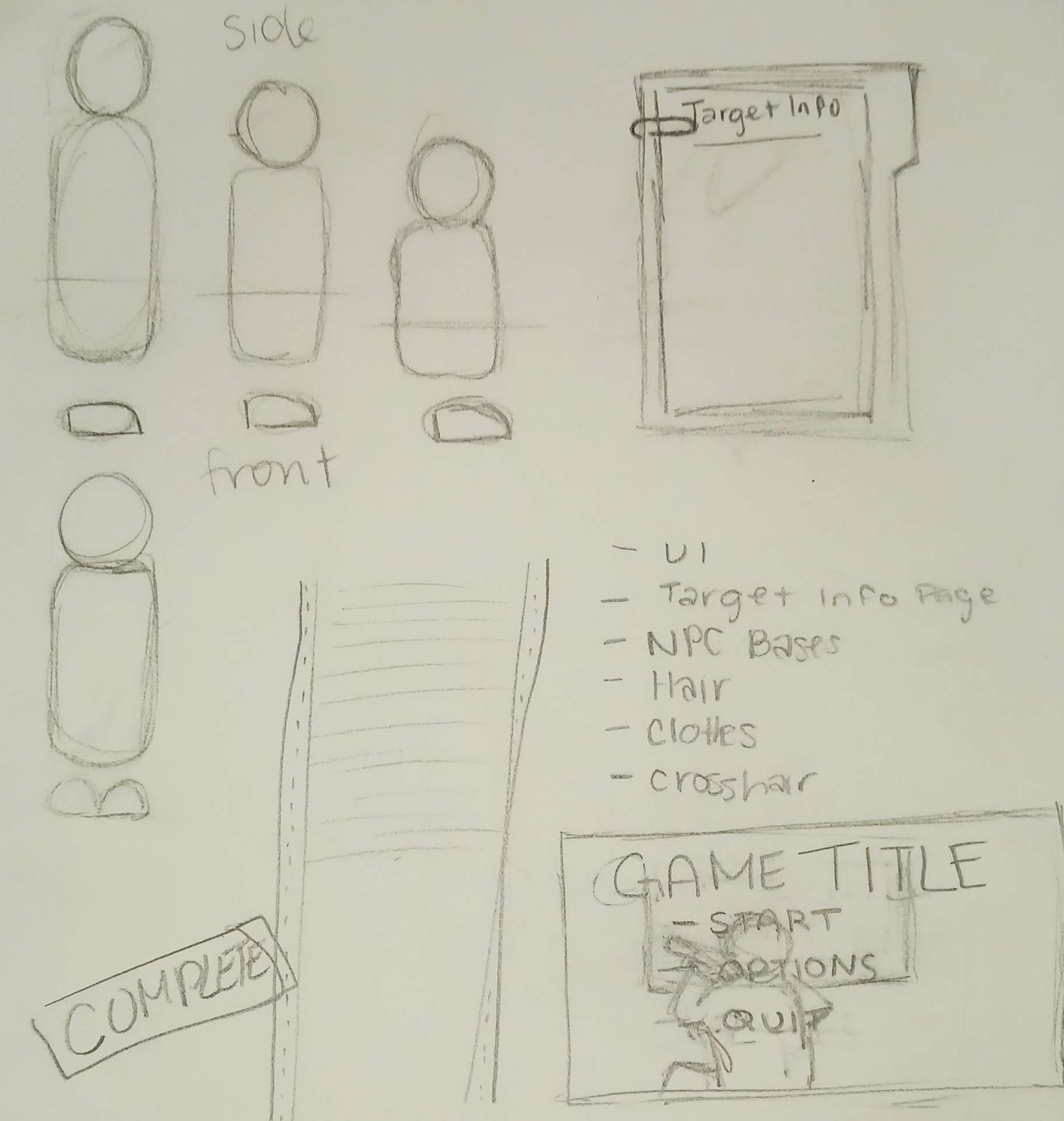 Initial design mockup for the citizens and UI layouts in S-Tier hitman, created in collaboration with Leigh Allen.